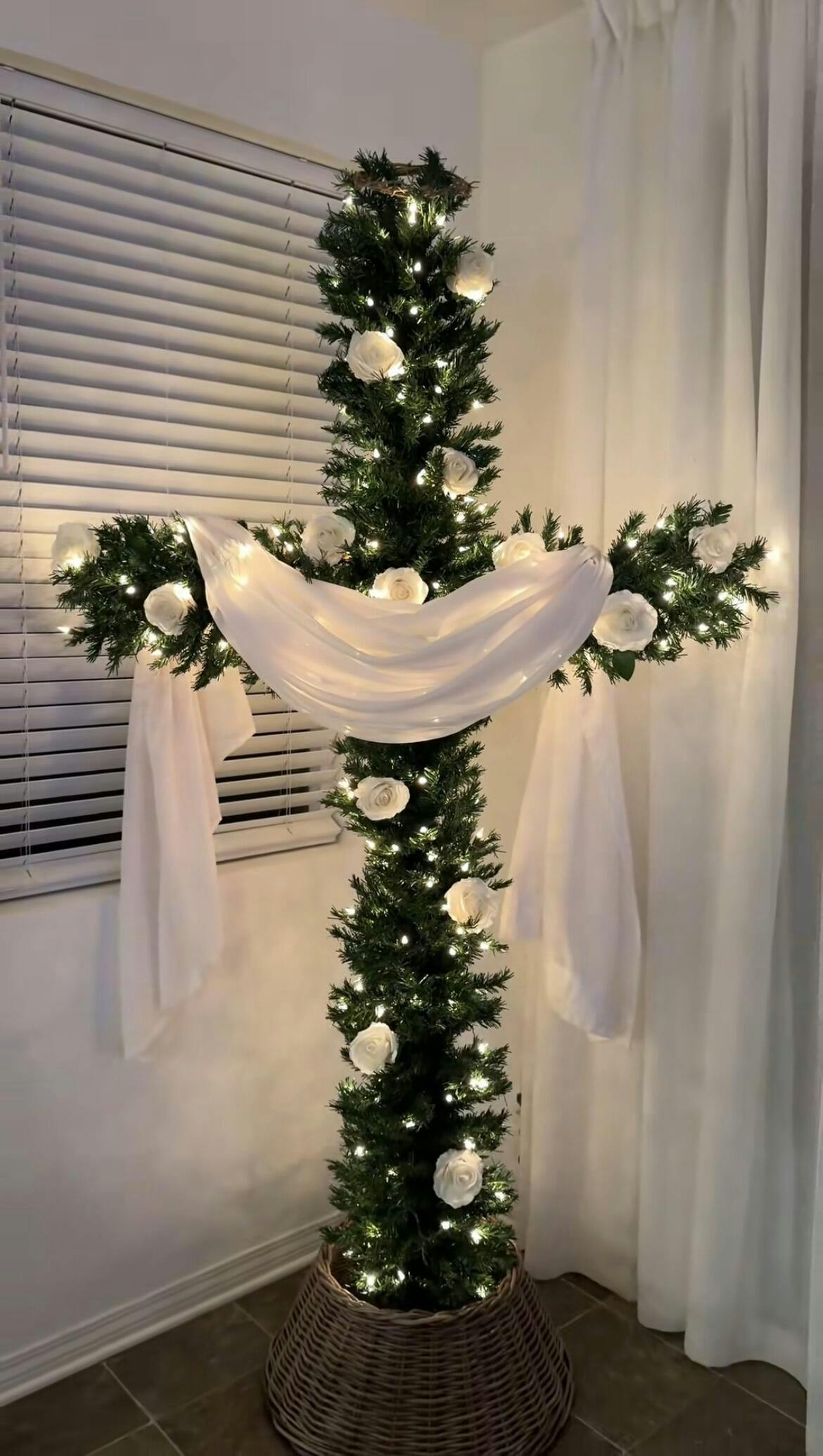 This 5'11" Christmas tree is beautifully shaped like a Christian cross, symbolizing faith and the true meaning of Christmas. Its unique design blends holiday warmth with spiritual significance, making it a stunning centerpiece for any home